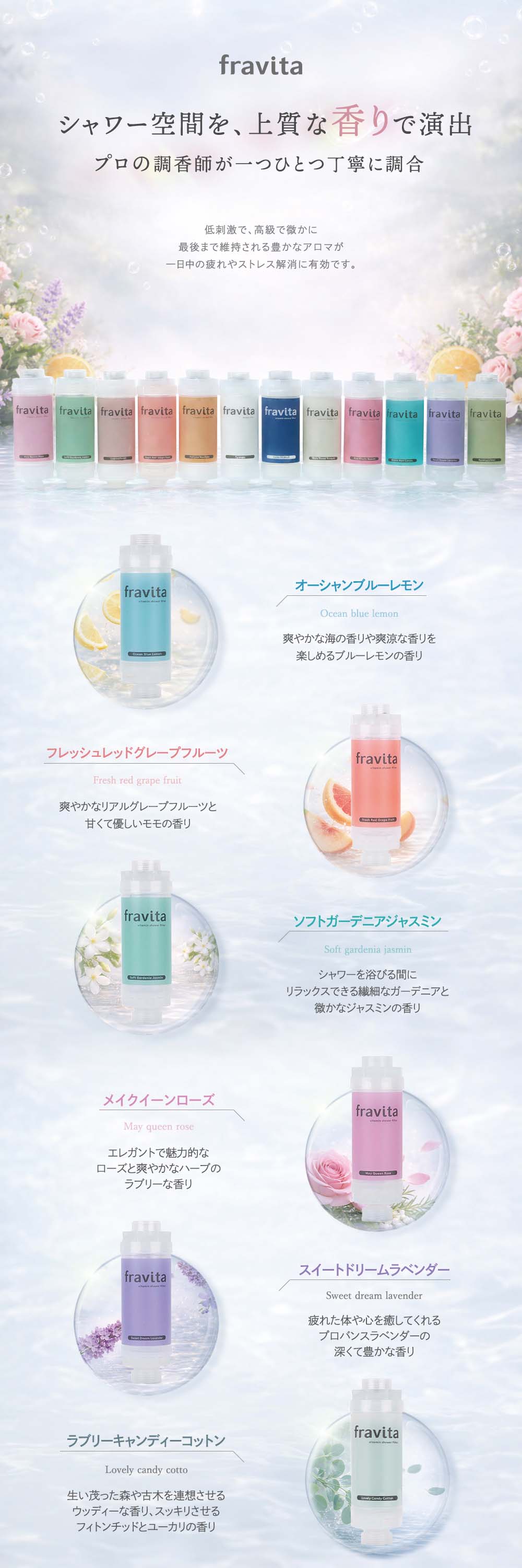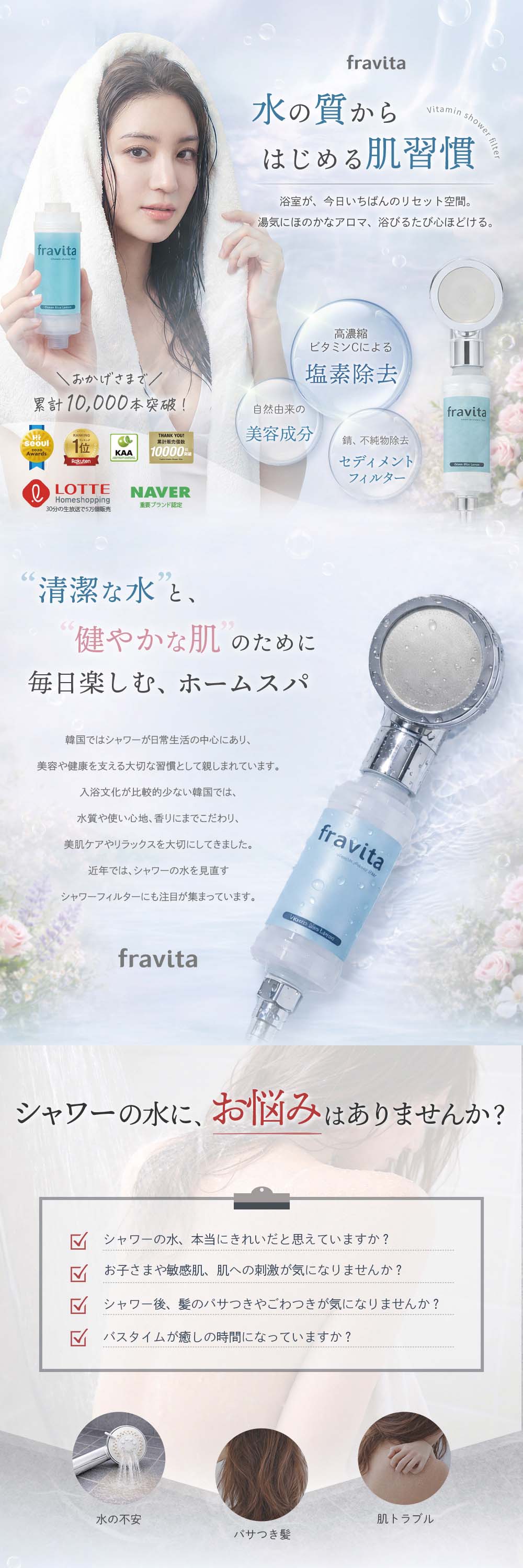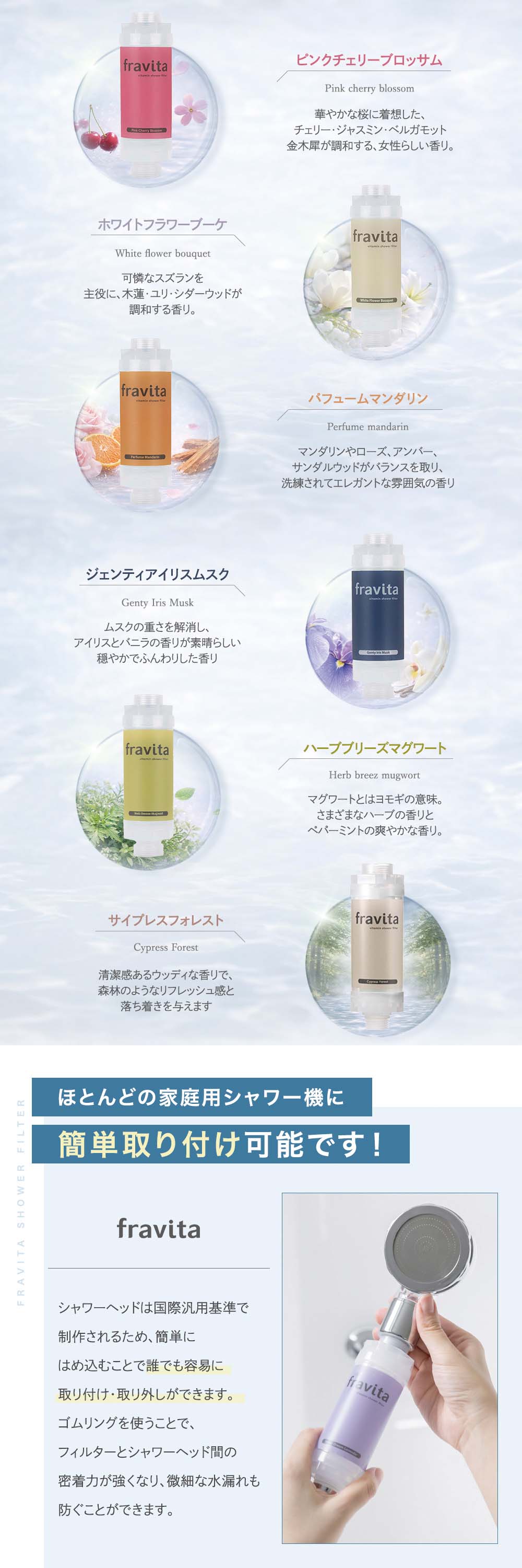 - 【特徴】プレビタ(fravita)とは:(fra)grance+(Vita)min 誰もが平凡に行っていたシャワーにスパの癒しを提供します。
