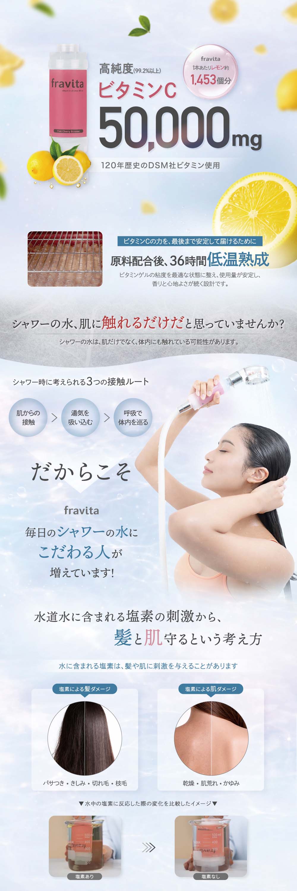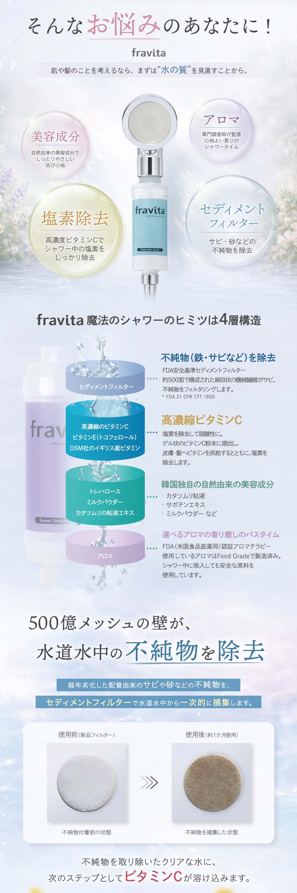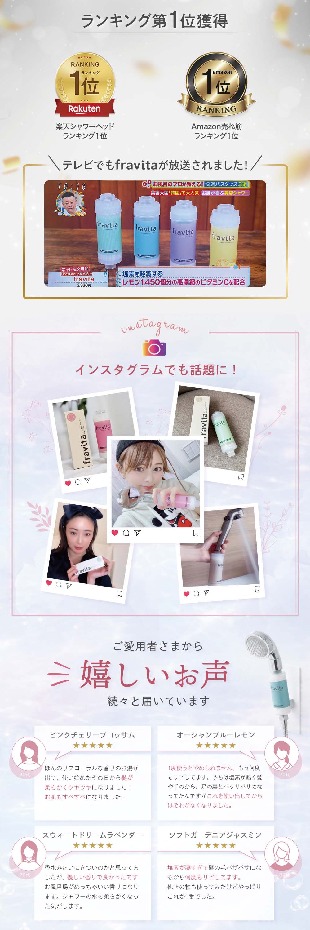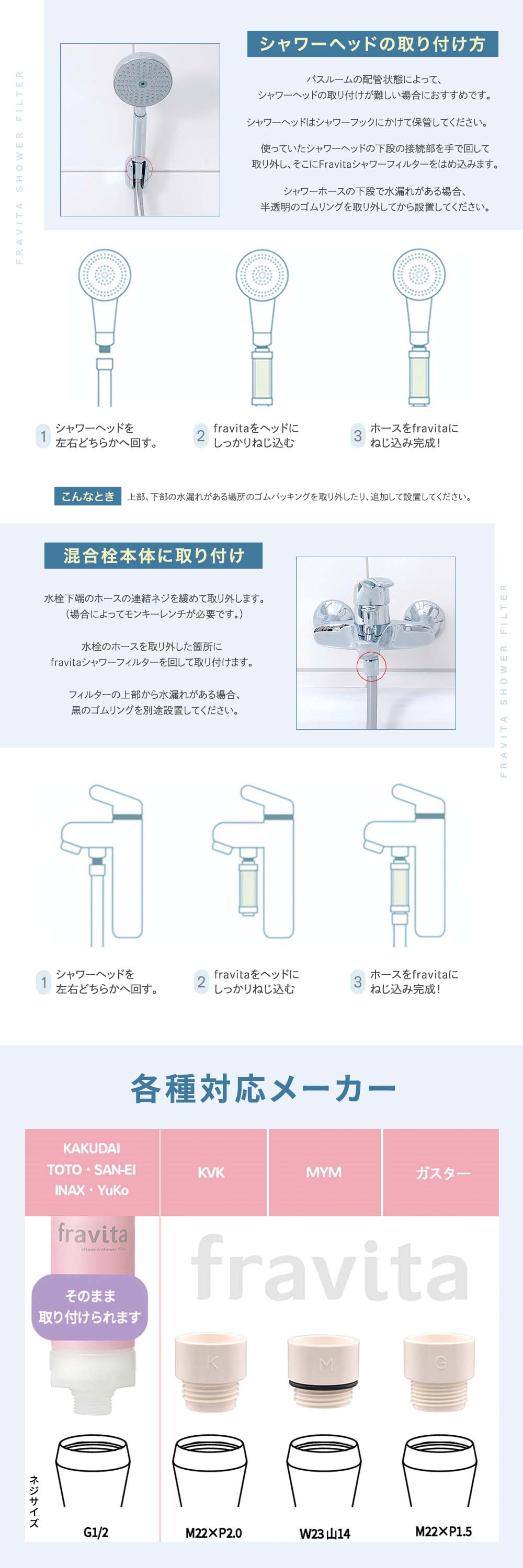 - 【特徴】プレビタ(fravita)とは:(fra)grance+(Vita)min 誰もが平凡に行っていたシャワーにスパの癒しを提供します。